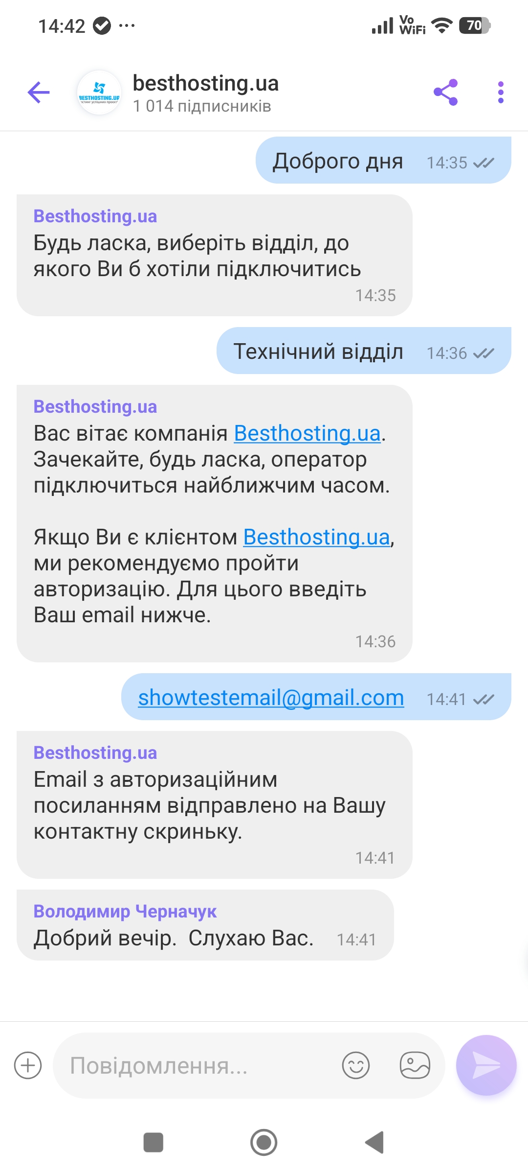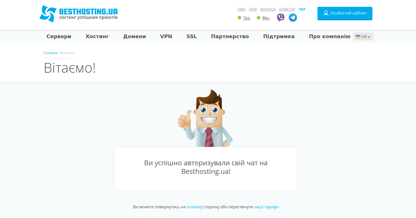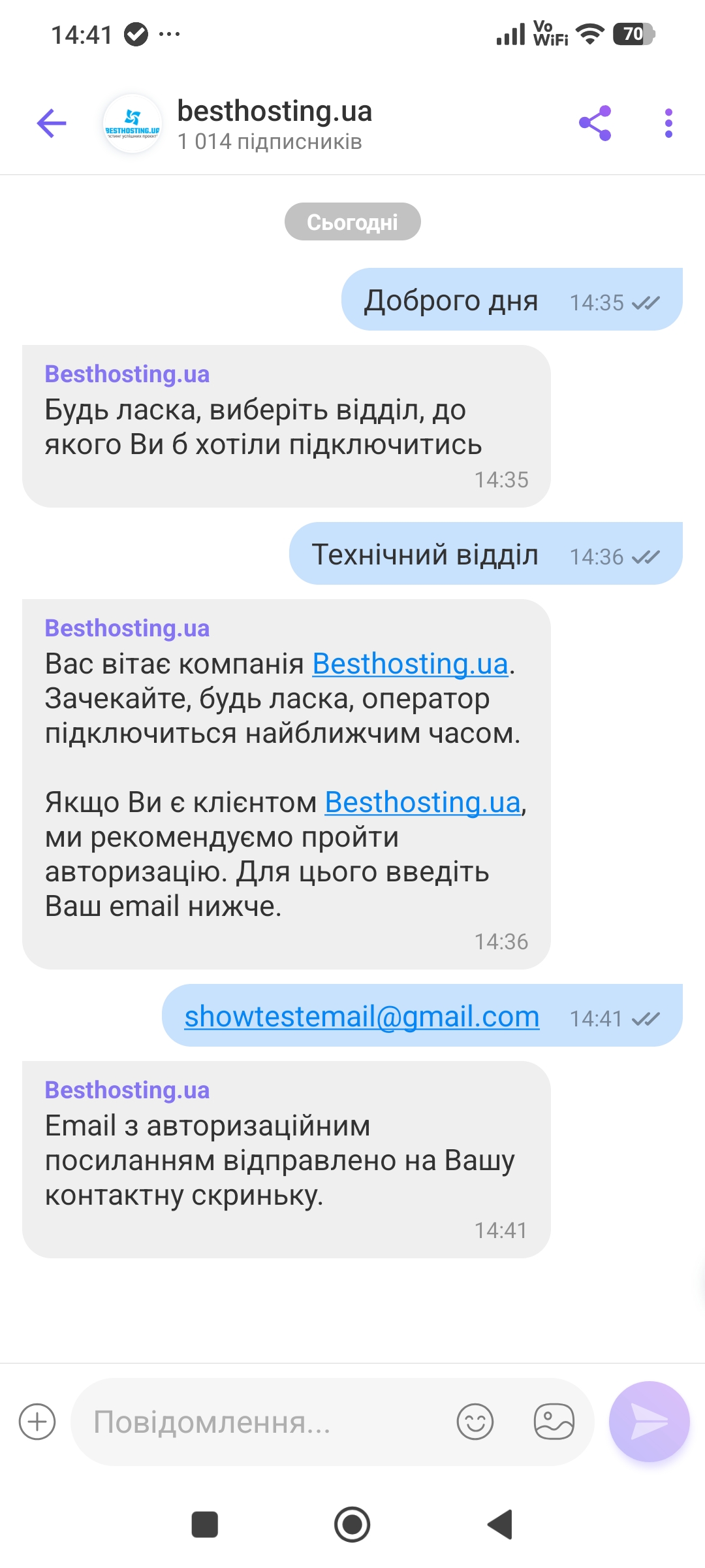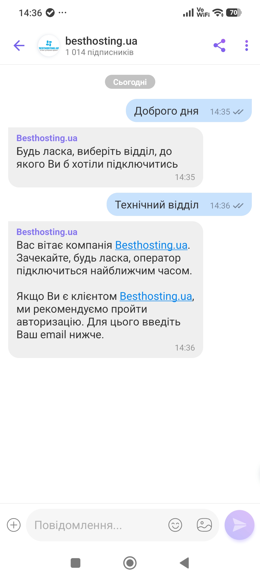 Добавив к себе Паблик аккаунт «Besthosting.ua» Вы сможете легко и быстро решать технические или финансовые вопросы. Большим преимуществом использования Viber является возможность отправки скриншотов проблем и фотографий квитанций или любых других необходимых вещей. Кроме этого, при общении через Viber у вас есть возможность предельно просто пройти авторизацию для того, чтобы все вопросы решались без дополнительного подтверждения.